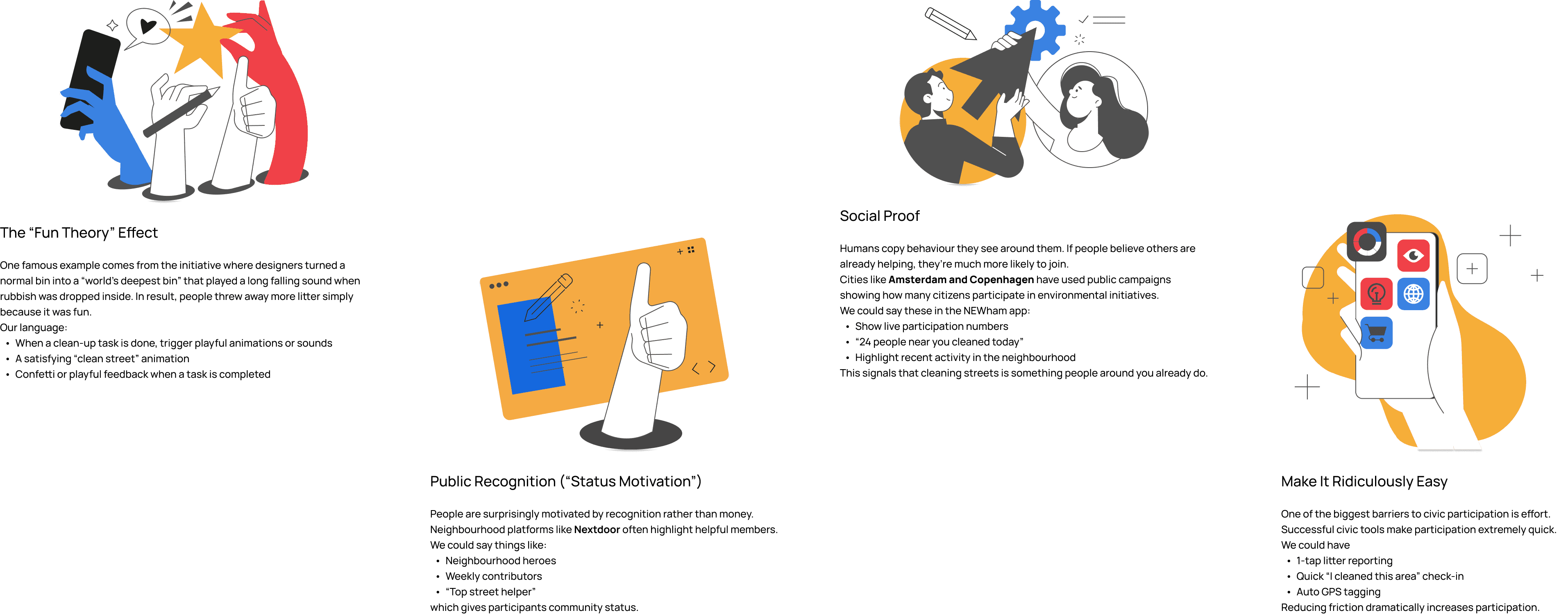 I came up with this clean-up & reward programme using psychology and behavioural tricks to boost incentives. The residents sign up, report refuses near them, join in their local clean up team as part of their life, and get both rewards psycologically and financially.